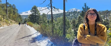 Andrea Moreno es artista plástica radicada en la Ciudad de México. Su práctica atraviesa la pintura, el textil y el dibujo como medios para explorar el paisaje urbano, las prácticas sociales y las formas de convivencia. Creció en el sureste de México, entre verdes de todas las tonalidades, y desde entonces mira la ciudad con esa misma sensibilidad hacia el entorno y sus transformaciones.